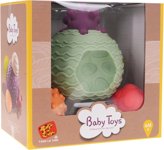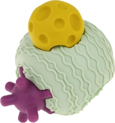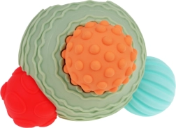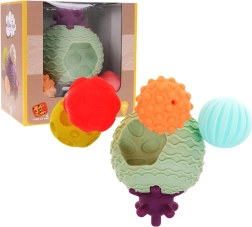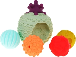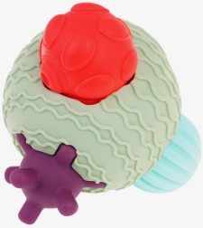 Toto senzorické guľa je ideálny spoločník na kúpanie malých detí. Súčasťou sady je veľká guľa a štyri menšie gule s rôznymi textúrami a tvarmi. Hlavná guľa má prehĺbeniny, kam sa menšie gule vkladajú, čo pomáha dieťaťu učiť sa rozoznávať rôzne farby a tvary.