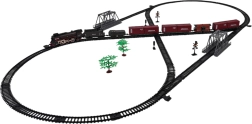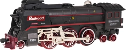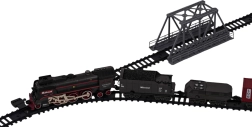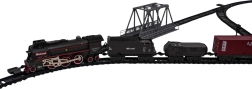 Retro vláčiková súprava s funkciou dymu a zvukmi jazdy a tiež koľajami v balení je vhodná pre deti od 3 rokov. Hračka je napájaná nabíjateľnou batériou typu 3,7 V (je súčasťou balenia), diaľkové ovládanie batériami typu 2 x AA 1,5 V (nie sú súčasťou balenia). Diaľkové ovládanie je zároveň jedným z vozíkov. Počas jazdy lokomotíva vypúšťa dym z komína a po bokoch (po naplnení vodou – vodná pipeta je súčasťou sady), navyše svieti svetlo umiestnené v prednej časti. Koľaje majú jednoduchý spôsob pripojenia, takže sú bezpečné a robustné na používanie. .. Funkcie sady: . - vhodné pre deti od 3 rokov, . - dym vychádza z komína a steká po bokoch, .- reflektor na čele lokomotívy, .- zvuky počas jazdy, .- jazda dopredu a dozadu. |