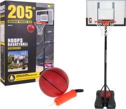 Veľká základňa s možnosťou naplnenia vodou alebo pieskom drží konštrukciu stabilne na mieste. V balení nájdete aj basketbalovú loptu a pumpičku, takže nič nebráni okamžitej hre doma aj na dvore.
