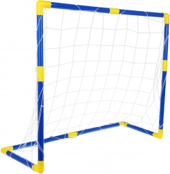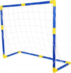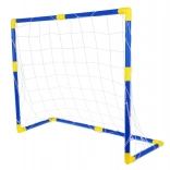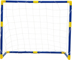 Modré trubky so žltými spojkami sa ľahko zacvaknú do seba a vytvoria stabilný rám. Sieť je pevne uchytená okolo konštrukcie, takže bránku postavíte aj prenesiete za chvíľku.