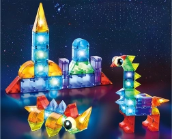 Táto pestrá sada magnetických kociek umožňuje deťom stavať autá, veže, zvieratká aj fantastické konštrukcie. Diely z odolného, bezpečného plastu držia pevne vďaka zabudovaným magnetom a svetelné moduly dodajú každému výtvoru efektný vzhľad. Súčasťou sú návody s rôznymi úrovňami náročnosti, takže deti postupne rozvíjajú svoje zručnosti.