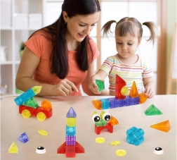 Silné magnety v dielikoch zabezpečujú rýchle zostavenie a pevnosť konštrukcií – ideálne pre malých staviteľov aj začiatočníkov.