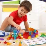 Stavebnica rozvíja koordináciu ruka–oko, učenie tvarov a farieb a podporuje tímovú hru aj samostatné objavovanie. Praktické balenie je ideálne na doma aj na cesty – rýchlo upracete a ľahko znovu postavíte.