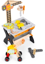 Pracovný stôl so žeriavom, náradím a spojkami rozvíja fantáziu, jemnú motoriku a učí základy kutilstva bezpečnou formou.