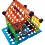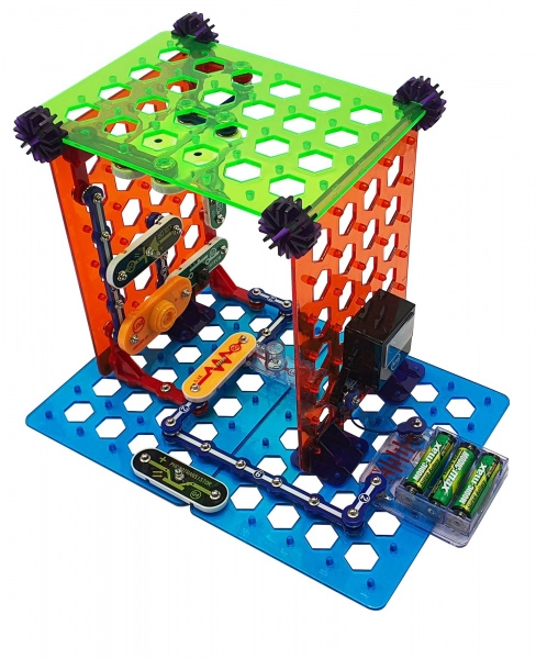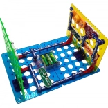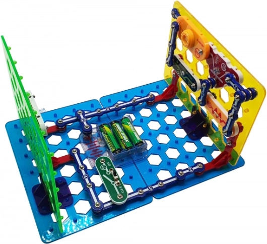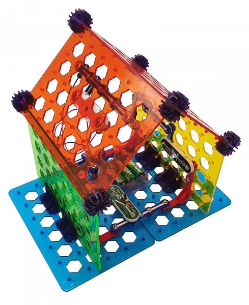 Stavebnica BOFFIN II Môj dom je ideálna pre deti od 8 rokov, ktoré chcú pochopiť princípy elektriny a inteligentnej domácnosti. Základ tvorí dierovaná doska, na ktorú sa diely jednoducho nacvakávajú – bez spájkovania, bezpečne a s okamžitým výsledkom. Postavíte osvetlenie, alarm, dvojposchodový dom, veterný mlyn aj párty dom a overíte si funkčnosť podľa priložených schém.