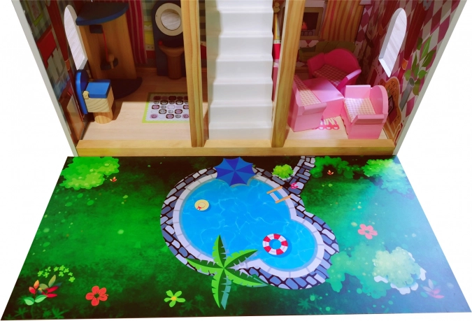 Predstavujeme krásny drevený domček pre bábiky, ktorý je perfektný pre každú detskú zbierku. Tento domček je atraktívnym prírastkom do detskej izby, pretože jeho drevená konštrukcia zaisťuje odolnosť a bezpečnosť pri hre.