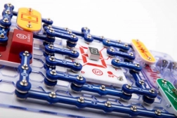 Diely sa pripájajú na základnú dosku pomocou snap kontaktov. Farebné rozlíšenie a popisy súčiastok uľahčujú orientáciu aj deťom od 8 rokov.