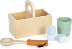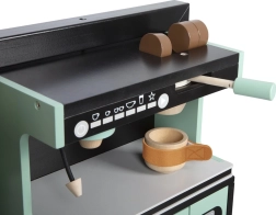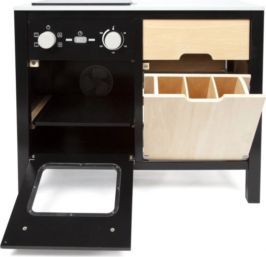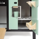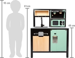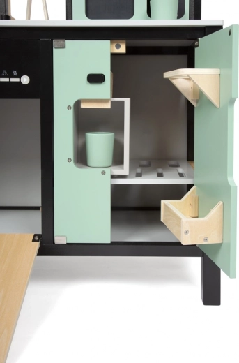 Kvalitné drevené spracovanie, otváracie dvierka a množstvo políc a priehradiek udržia poriadok v každej kuchynke. Deti si precvičia organizáciu, jemnú motoriku aj sociálne zručnosti.