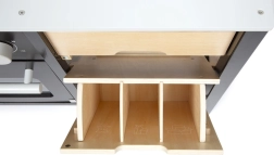 - varná doska, rúra, mikrovlnná rúra, chladnička s výrobníkom ľadu, kávovar, otváracie dvierka, úložné priestory