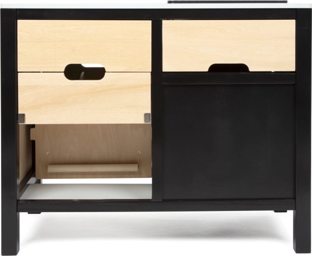 Elegantná kombinácia čierneho rámu a prírodného dreva dodá detskej izbe moderný nádych. Samostatný ostrovček možno pripojiť ku kuchynke a vytvoriť rohové riešenie – flexibilný hrací priestor na mieru.