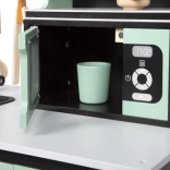 Varná doska, rúra, mikrovlnka, chladnička s výrobníkom ľadu aj kávovar podnecujú predstavivú hru. Hrniec s pokrievkou, panvica, šálky, poháriky, kuchynské náčinie a „kocky ľadu“ robia z varenia skutočnú zábavu.