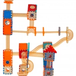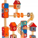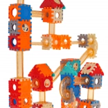 Stavebnica je vyrobená z kvalitného plastu v žiarivých farbách, ktoré priťahujú pozornosť. Po dokončení stačí vhodiť guľôčku do horného lievika a sledovať, ako prechádza dráhou – je to nielen zábavné, ale aj relaxačné. Súčasťou sú tiež dekoratívne samolepky na personalizáciu stavieb.