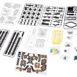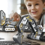Z jednej sady zostavíte tank, harvester, vysokozdvižný vozík a pásové rýpadlo – každý model má pohyblivé prvky a je pripravený na diaľkové riadenie.