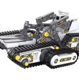Táto všestranná stavebnica ponúkne deťom aj rodičom hodiny zábavy a učenia. Z jednej sady postavíte až 4 rôzne modely – tank, stroj na ťažbu dreva, vysokozdvižný vozík a pásovú konštrukčnú bagrovaciu súpravu. Po zapojení akumulátora a vložení batérií do ovládača modely ožijú a môžete ich pohodlne riadiť.