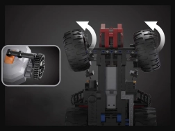 Dva motory M, motor L a presný servomechanizmus zabezpečujú jazdu vpred/vzad a presné riadenie. Na diaľku zdvíhajte zadný záves a otáčajte úchyt o 180°.