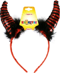 Očarujte na karnevale či Mikulášovi štýlovým doplnkom – čelenkou s čertovskými rohmi zdobenými oslnivými flitrami a hebkým perím. Ľahká saténová čelenka pohodlne drží na hlave a dodá vášmu kostýmu výrazný a pôvabný efekt.