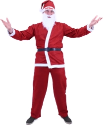 Priveďte ducha Vianoc s týmto *profesionálne vyrobeným Santovým kostýmom*, ktorý zaručene rozžiari každú sviatočnú príležitosť. Tento kostým obsahuje základné prvky Santovho odevu, ako je červený kabátik s bielymi lemami, červené nohavice, klasická Santova čiapočka tiež s bielym lemovaním a čierny opasok, ktoré plne dotvárajú vzhľad.