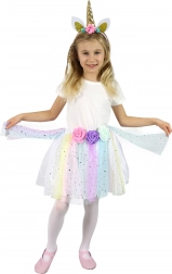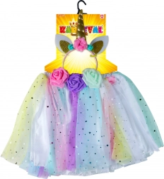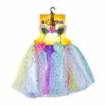 Premeňte svoje dieťa na čarovného jednorožca s týmto farebným kostýmom, ktorý zahŕňa tutu sukničku a čelenku s jednorožcom. Táto sada je ideálna pre deti, ktoré si chcú užiť rozprávkové dobrodružstvá pri hre. Sukňa je zdobená farebným tylom s dekórom hviezdičiek a je navrhnutá tak, aby sa ľahko prispôsobila vďaka elastickému pásu.