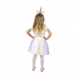 Čelenka dodá outfitu finálny čarovný dotyk vďaka svojmu zlatému rohu a jemným uškám. Kostým je pohodlný a ľahko sa nosí. Ponúka nielen štýlový vzhľad, ale aj pohodlie, ktoré si deti zamilujú.