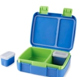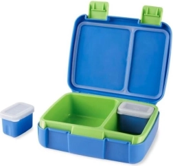 Tento obedový box je skvelý pre deti vo veku 3+. Ponúka bezpečné uzavretie a ľahké použitie zámkov, takže je ideálny pre malé deti. Vďaka odnímateľnému tácku s 2 časťami je vhodný do mikrovlnnej rúry, rovnako ako 2 samostatné nádoby na desiatu s viečkami. Má pružnú rukoväť pre ľahké prenášanie a všetky komponenty možno umývať v umývačke.
