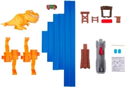 Okruh obsahuje dve kaskadérske slučky, ktoré prinášajú množstvo zábavy a vzrušenia. Súčasťou balenia je tiež závodné auto Metal Machines a figúrka T-Rexa, ktorý tvorí hrozbu pre mesto na konci trate. Doporučené pre deti od 4 rokov a staršie.
