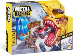 Zuru Metal Machines T-Rex Útok pozýva deti do sveta závodných áut a dinosaurov. Ukáž, či máš dostatok odvahy a rýchlosti na prekonanie prekážok na dráhe plnej dve sto metrov a šesťdesiat tri centimetrov dlhej zábavy, kde sa T-Rex snaží polapiť tvoj malý závodný voz!
