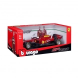 Model zachytáva realistické vzhľadové prvky vrátane sponzorských log a aerodynamických tvarov typických pre závodné vozidlá Ferrari.