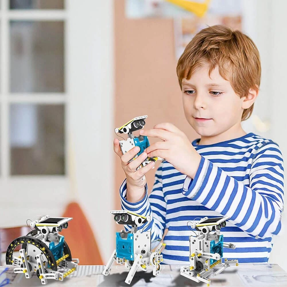 Objavte zábavný svet techniky s touto edukatívnou solárnou stavebnicou 14 v 1, ktorá učí deti využívať energii slnka na pohon rôznych modelov robotov a vozidiel. Sada ponúka až 14 prestaviteľných modelov, dve úrovne náročnosti a prevádzku na súši aj vo vode. Ideálne pre malých konštruktérov od 10 rokov. Pre správnu funkciu je nutné silné prirodzené slnečné svetlo.