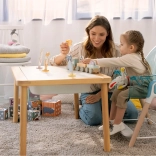 Stolička ponúka varianty pre batoľatá a staršie deti vďaka odnímateľným nohám, ktoré umožňujú nastaviť výšku podľa potrieb.