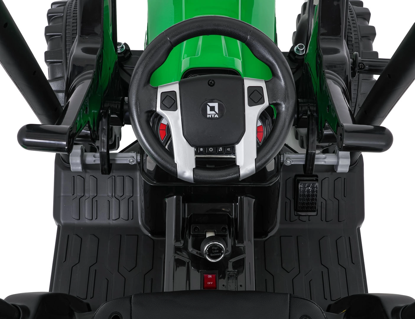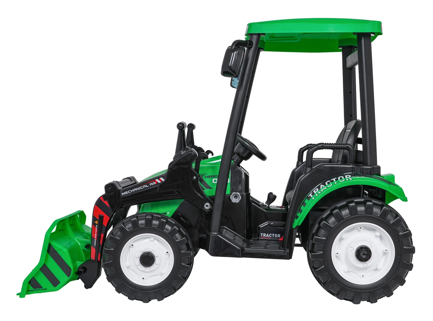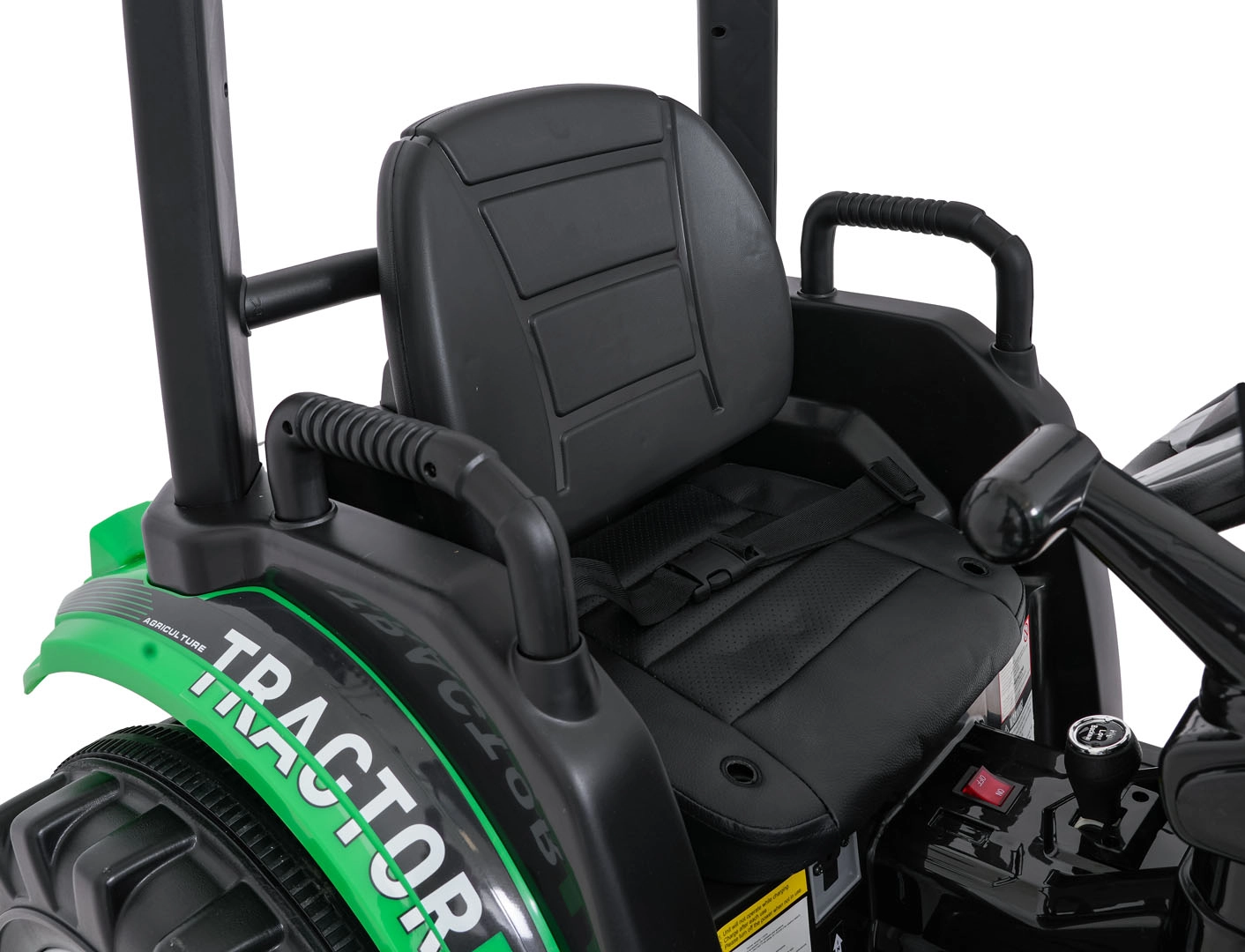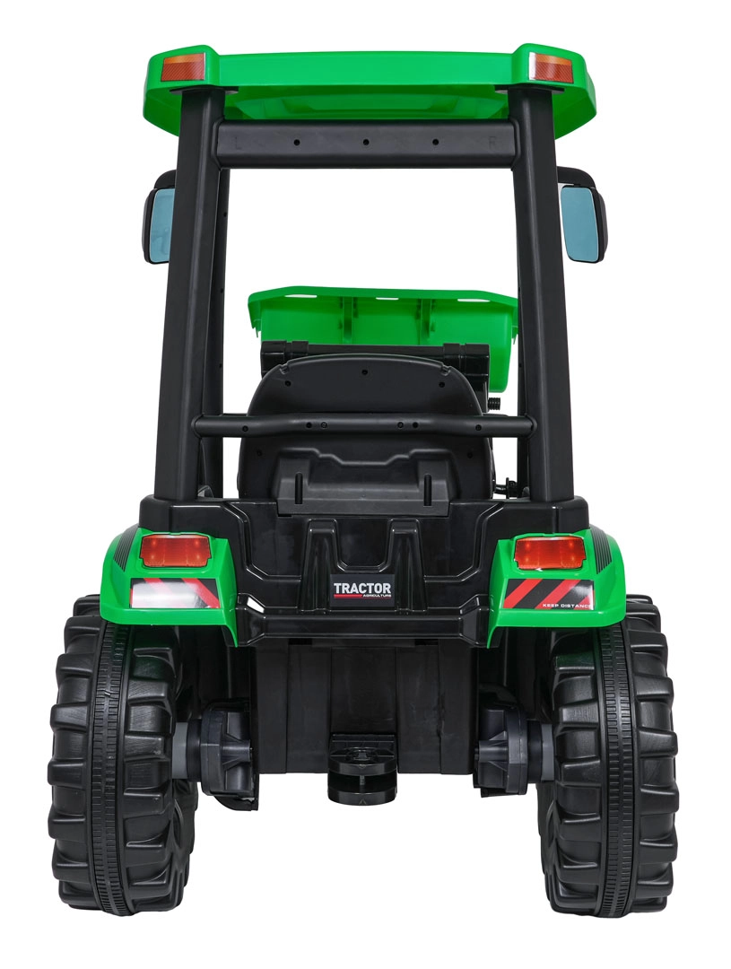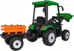 Elektrický traktor MEGA d68 v zelenej farbe je skvelá voľba pre malých traktoristov. Ponúka robustné spracovanie, funkčnú prednú lyžicu na nakladanie a priestranný odpojiteľný príves na hračky. Pohon zabezpečujú 2 výkonné motory 200 W a spoľahlivý akumulátor 24 V/7 Ah, ktoré spolu poskytujú plynulý rozjazd, dve rýchlosti a jazdu dopredu aj dozadu.