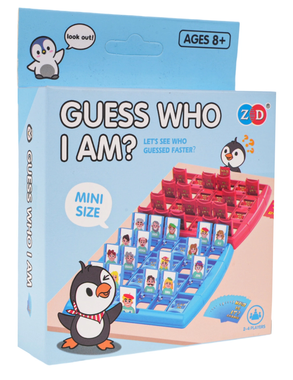 Obľúbená hádacia hra pre 2 hráčov. Každý hráč má svoju planžetu s výklopnými okienkami a tajne zvolenou postavou. Pomocou premyslených otázok s odpoveďou „áno“ alebo „nie“ postupne zužujete výber, až správne uhádnete, koho si súper vybral. Varianta Tučniak prináša svieži dizajn a zábavu pre celú rodinu.
