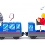 Osobný vlak s rušňovodičom a cestujúcimi na batérie