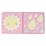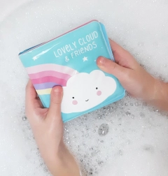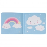 Táto vodoodolná knižka do kúpeľa premení večerné kúpanie na radostný rituál. Farebné ilustrácie s obláčikmi, hviezdičkami a dažďovými kvapkami podporujú zvedavosť a zmyslový rozvoj najmenších detí, zatiaľ čo mäkké polstrované stránky sú príjemné na dotyk a bezpečné na hru vo vani.