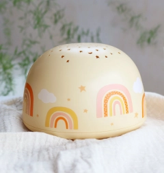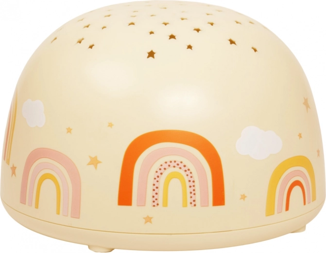 Táto vanilkovo žltá nočná lampa s motívom dúhy premieta hviezdy na steny a strop detskej izby a pomáha deťom pokojne zaspať. Vďaka kompaktným rozmerom je ľahko prenosná a bezdrôtová prevádzka na batérie z nej robí ideálny doplnok do každého detského pokoja.