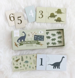 Zábavné vzdelávacie puzzle, ktoré deti od 2 rokov učí počítať. Obsahuje 10 dvojdielnych hádaniek, kde deti priraďujú čísla k obrázkom dinosaurov. Veľké a pevné dieliky z kartónu uľahčujú manipuláciu malým rúčkam a praktická krabička zaistí ľahké ukladanie.