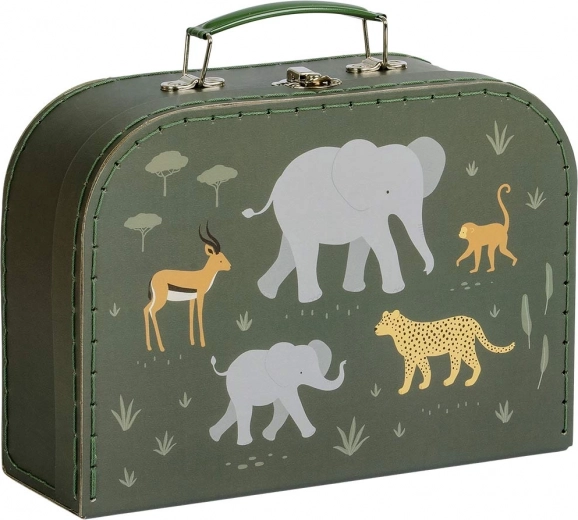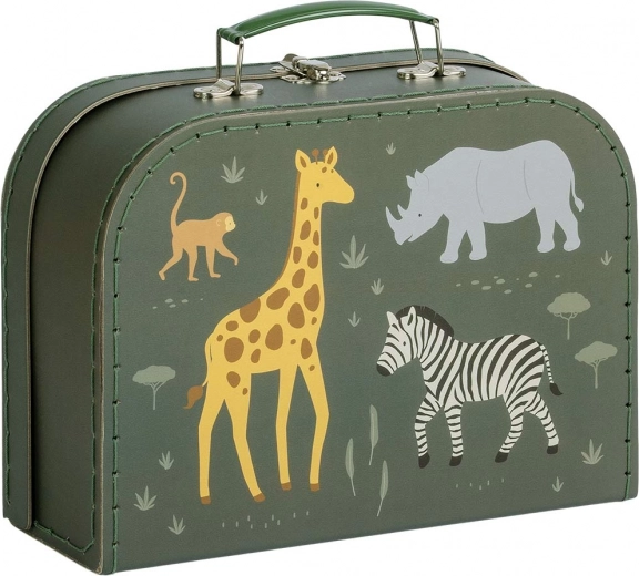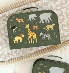 Štýlová sada dvoch kartónových kufríkov so vzorom zvierat zo savany poteší deti aj rodičov. Ponúka praktické uloženie hračiek a výtvarných potrieb, je vyrobená z odolného kartónu s pevnými kovovými úchytmi a sponou pre bezpečné uzavretie.