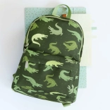Zábavná potlač krokodílov deti baví a zároveň je batoh vďaka hrudnému popruhu vždy bezpečne na ramenách.