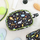 Doprajte deťom prehľad v hygiene aj na cestách. Táto hravá toaletná taštička s vesmírnym motívom pojme šampón, mydlo, zubnú kefku, pastu aj drobné doplnky. Vďaka bočnému ušku sa ľahko prenáša a vešia v kúpeľni alebo v sprche.