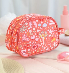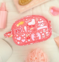 Štýlová a funkčná toaletná taštička pre deti s hravým dizajnom „GRL PWR“, srdiečkami a veselými motívmi. Vďaka kompaktným rozmerom 20,5 × 14 × 9,5 cm sa zmestí do batohu aj kufra a zároveň ponúkne dostatok miesta na všetky hygienické potreby.