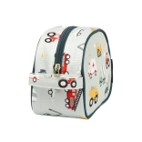 Farebná potlač áut, bagrov a miešačiek na neutrálnom podklade poteší každé dieťa a uľahčí rozlíšenie vlastnej taštičky.