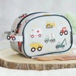 Táto štýlová toaletná taštička A Little Lovely Company s hravou potlačou áut, bagrov a ďalších strojov udrží detské hygienické potreby pekne pokope. Je vyrobená z odolného textilného materiálu, má hladko bežiaci zips a bočné pútko na pohodlné nosenie aj zavesenie v kúpeľni.