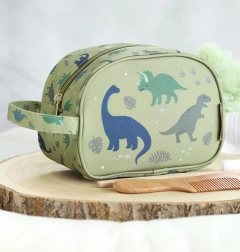 Majte detskú kozmetiku prehľadne na jednom mieste vďaka roztomilej toaletnej taštičke s dinosaurami. Ľahká, odolná a pohodlná na nosenie – perfektná voľba do batohu aj kufra.