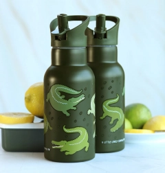 Štýlová detská fľaša z nehrdzavejúcej ocele s objemom 350 ml s motívom krokodíla kombinuje dvojstennú izoláciu pre skvelé udržanie teploty, praktický náustok so slamkou na studené nápoje a odolné prevedenie ideálne do škôlky, školy aj na výlety.