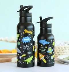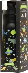 Pre horúce nápoje odporúčame dokúpiť samostatne predávaný nerezový skrutkovací uzáver, ktorý z fľaše vytvorí plnohodnotnú termosku. Fľašu možno zladiť s ďalšími doplnkami s vesmírnym motívom – desiatovou krabičkou, peračníkom či batohom.