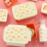 Praktická detská krabička na desiatu s motívom dúhy je ideálna do školy aj na výlety. Vďaka vzduchotesnému zacvakávaciemu veku a vyberateľnej nádobke s dvoma priehradkami zostane jedlo čerstvé a prehľadne usporiadané po celý deň. Objem 1,2 l ponúka dostatok miesta pre pestrú desiatu, ktorú si deti zamilujú.