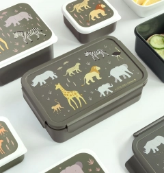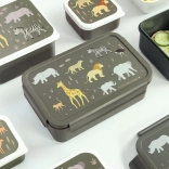 Tento praktický desiatový box s motívom zvierat zo savany poteší deti aj rodičov. Vďaka spoľahlivému zacvakávaciemu veku sa obsah nevysype a zostane dlhšie čerstvý. Vyberateľný táckový diel s dvoma priehradkami umožní ľahko oddeliť ovocie, sendvič či snacky.