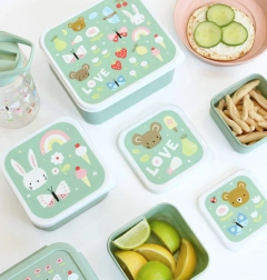 Táto sada prináša hravý dizajn a premyslené riešenie pre každodenné balenie jedla. Štyri rôzne veľkosti uľahčia rozdelenie desiat a prehľadnú organizáciu. Vďaka stohovateľnému prevedeniu sa krabičky po použití úsporne uložia jedna do druhej.