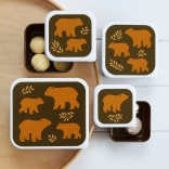 Táto praktická sada obsahuje štyri krabičky na desiatu v rôznych veľkostiach, všetky s rovnakým hravým motívom hnedých medveďov. Vďaka možnosti vkladať krabičky do seba ušetríte miesto v kuchyni aj batohu a ľahko vyberiete ideálnu veľkosť pre ovocie, sušienky či sendvič. Vhodné na každodenné používanie doma, v škole aj na cestách.