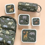 Praktická sada štyroch desiatových krabičiek v štyroch veľkostiach s motívom zvierat zo savany. Krabičky sa ľahko otvárajú, možno ich vkladať do seba na úsporu miesta a sú ideálne na obed aj desiaty do škôlky, školy alebo na výlety.