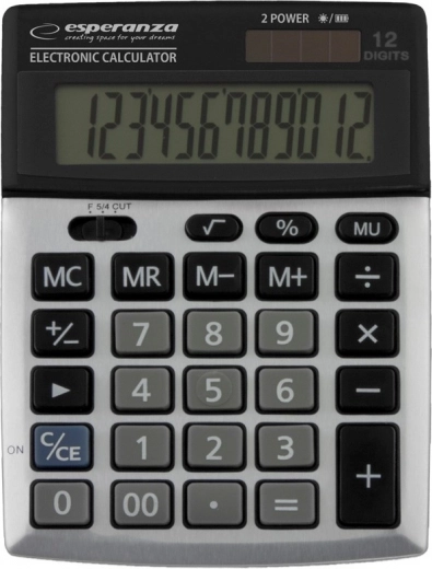 Praktická elektronická kalkulačka s veľkým 12-miestnym displejom, základnými matematickými funkciami, pamäťou výsledkov a klávesou krok späť. Naklonený displej, veľké číslice a veľké tlačidlá zabezpečujú pohodlné používanie v kancelárii aj v predajni.